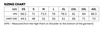 Half Chest (cm) 59 61 63 65 67 69 71 73 75 77